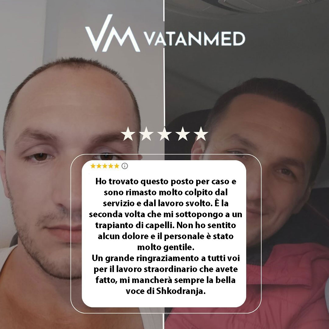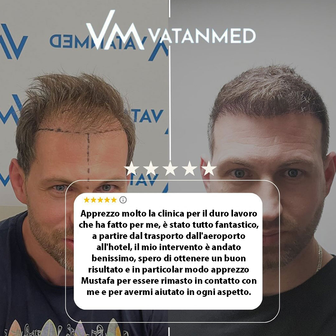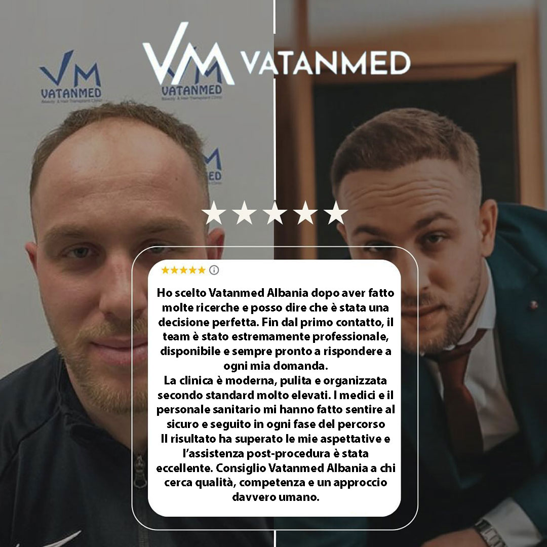 Ogni recensione che leggi qui è scritta da pazienti che hanno scelto la clinica Vatanmed in Albania per il loro trapianto di capelli. Dalla prima consulenza al risultato finale — la loro esperienza autentica ora aiuta e ispira altri, come te.